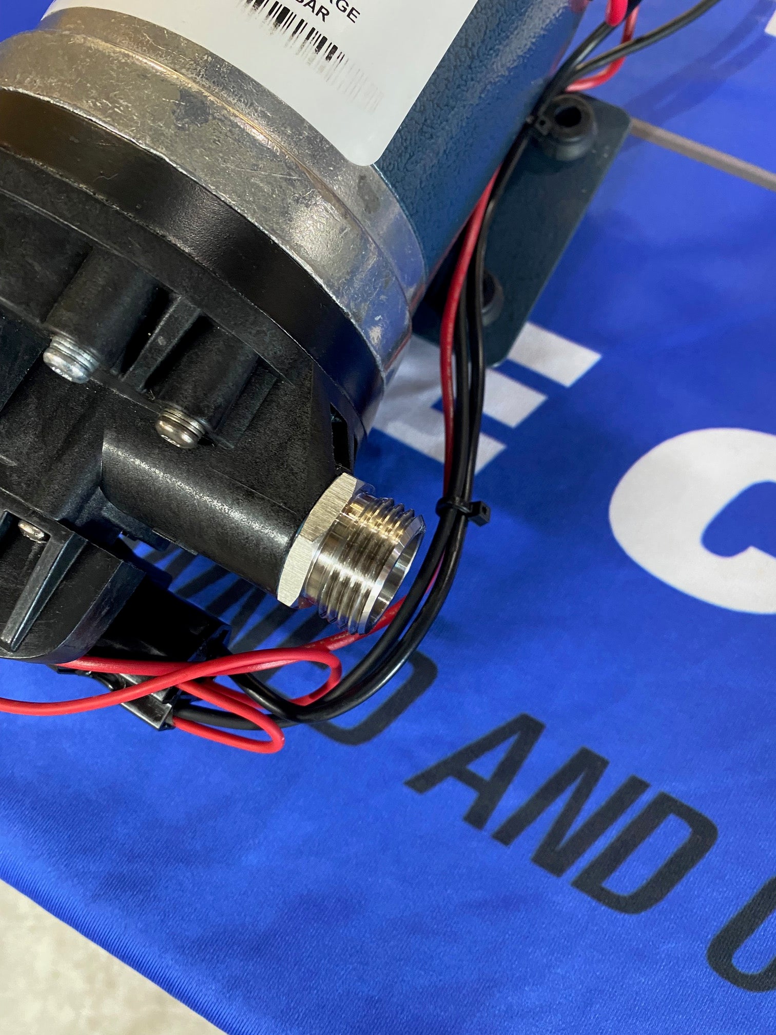 This is a used Delavan 7GPM pump. We got this pump from a customer who purchased it as part of a Generation 2 soft wash system. The customer purchased the system in June 2025 and soon after called our customer service to report the pump had stopped working. As the customer was self-described as not very mechanically inclined, instead of going through our normal troubleshooting process we decided to supply our customer with a new pump. When we got the pump back, we determined that the relay had gone bad, but the pump was still serviceable, so we replaced the relay, bench tested it and determined it is ready to go.